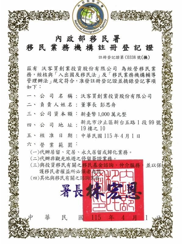 註冊登記 第C0338號| 中移廣字第114063002號 (僅予審閱確認移民廣告)